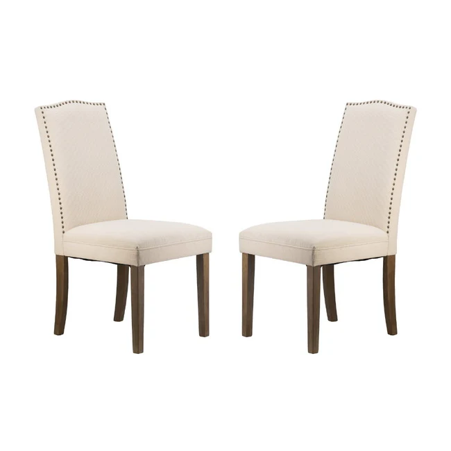 DA Studded Beige Fabric Upholstered Dining Chair Set of 2