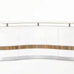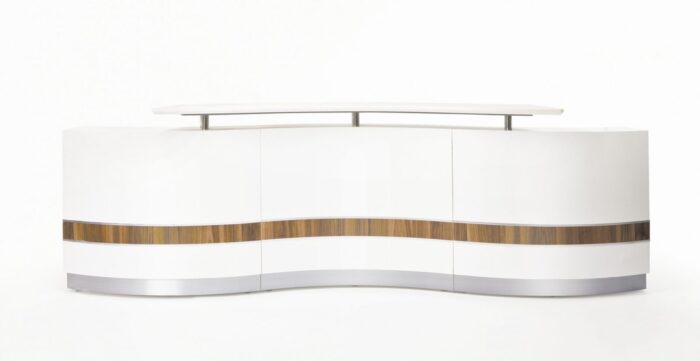 - Counter body in gloss white with feature gloss teak panel and Aluminium strips.