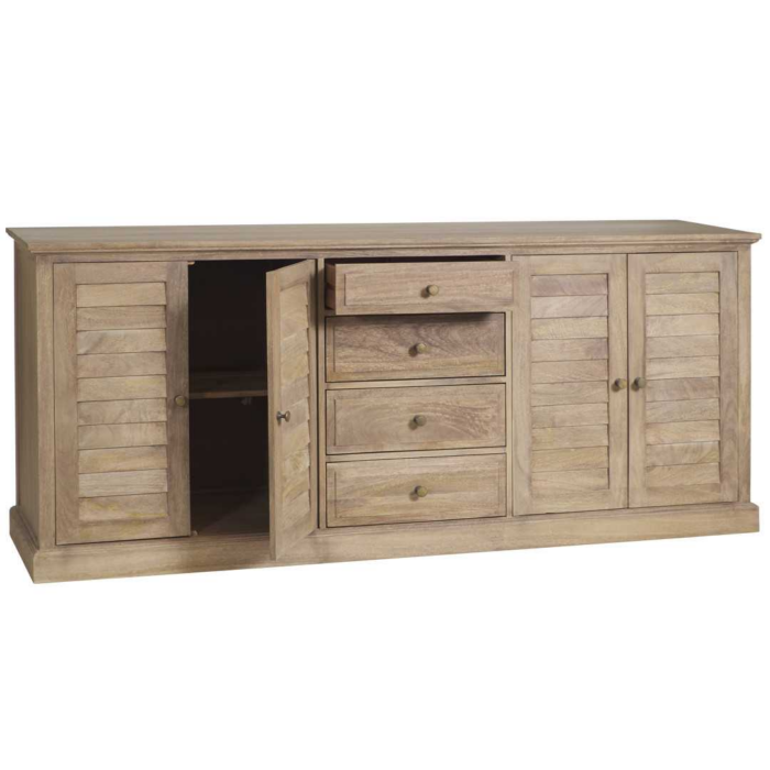 Our Chartres range is a modern update drawing heavily from a coastal style but with a more contemporary edge and natural finish. Made from solid mango wood, all pieces feature wide slat louvre doors with ample storage ready to become part of your new interior space. Features